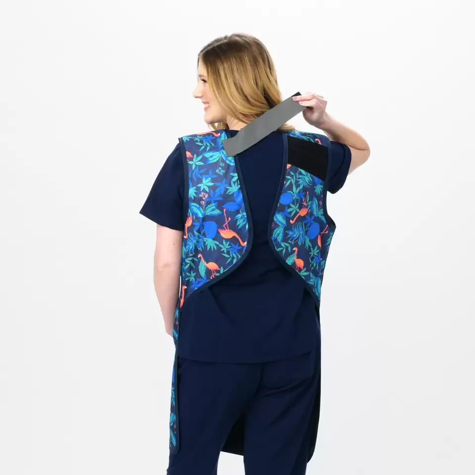 - Cierres de gancho y bucle en la parte superior de ambos hombros