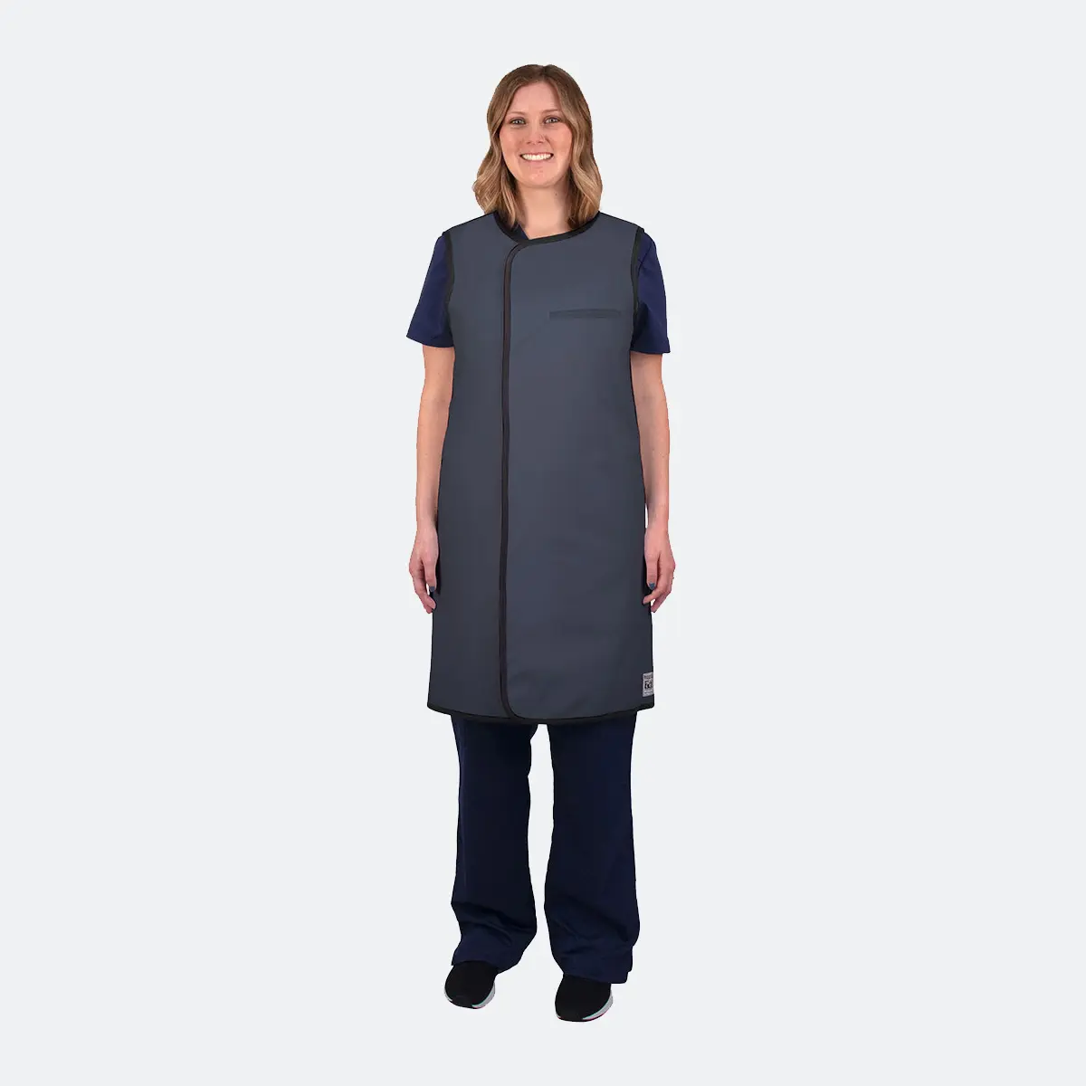 Paneles frontales parcialmente superpuestos para máxima protección con cierres de velcro y bolsillo de doble ribete.