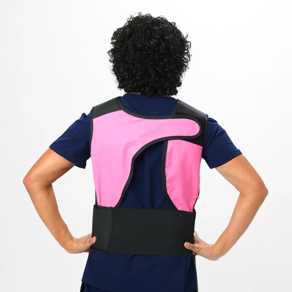 - Cinturón elástico ortopédico Black Belt® de 6″ de ancho que soporta la parte baja de la espalda mientras ayuda a quitar el peso del delantal de los hombros